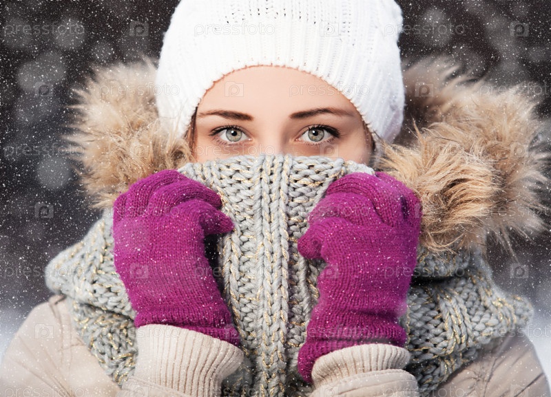 Портрет красивой девушки в шарфе и перчатках