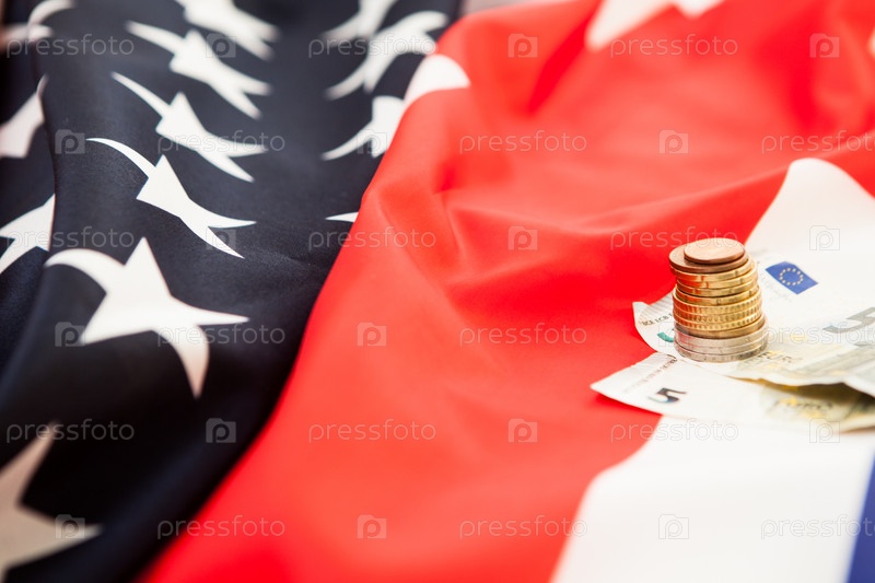 Деньги на фоне флага Соединенных Штатов Америки