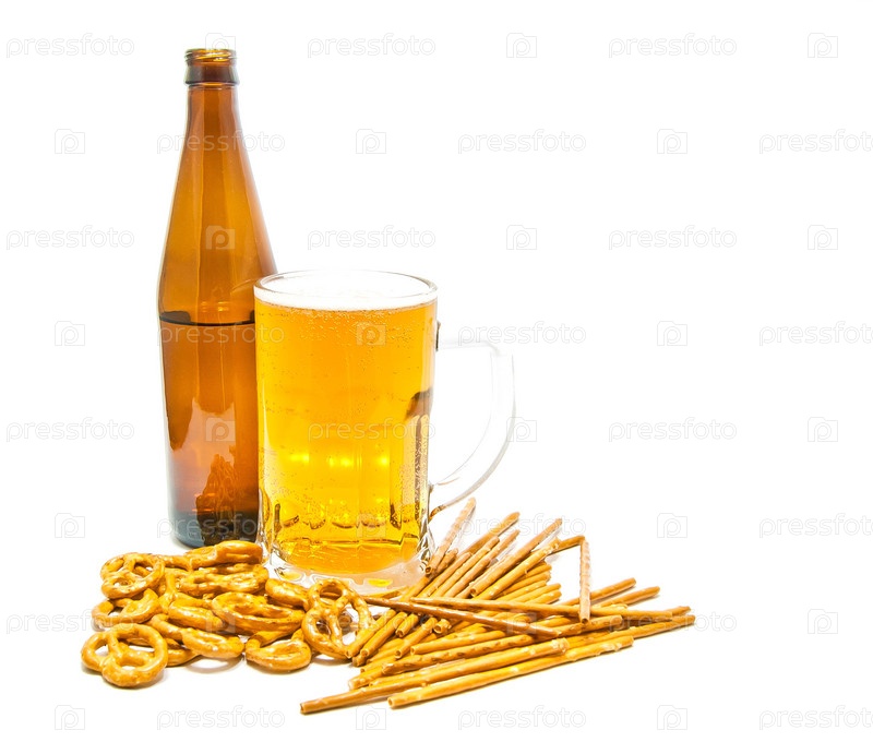 Светлое пиво и сухарики