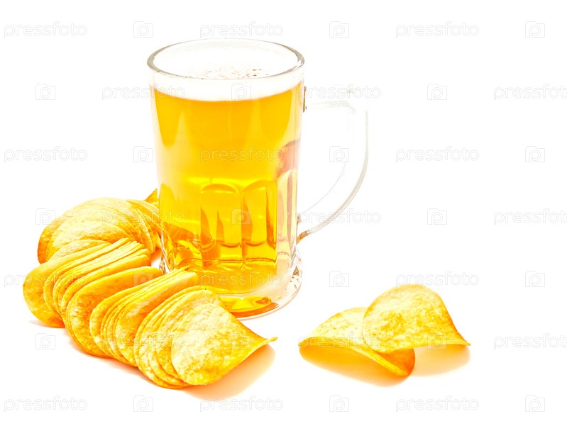 Чипсы и пиво крупным планом