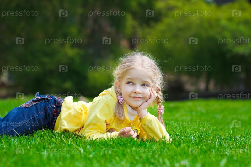 Маленькая девочка, лежащая на траве