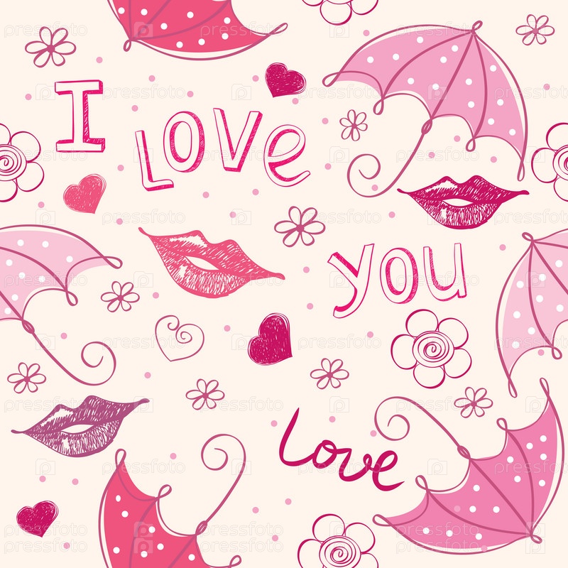Фон с зонтиками и поцелуями