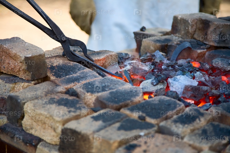 Очаг в кузне, на котором раскаляют подковы для дальнейшей ковки