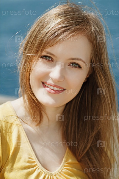 Красивая блондинка на фоне моря