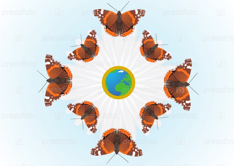 Бабочки летают вокруг земного шара