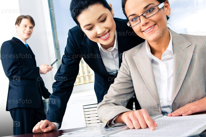 Изображение двух деловых женщин, работающих вместе в офисе