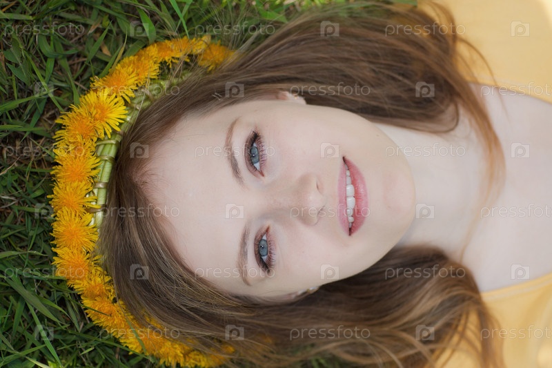 Красивая девушка в венке из одуванчиков