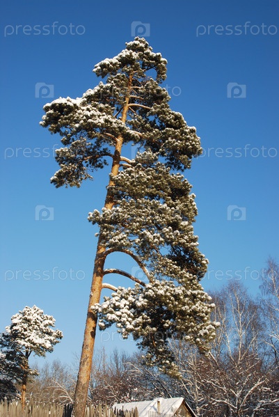 Сосна на фоне синего неба