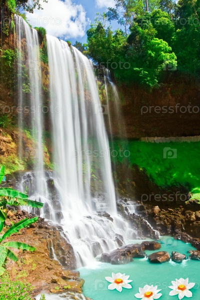 Цветы лотоса в бассейне водопада