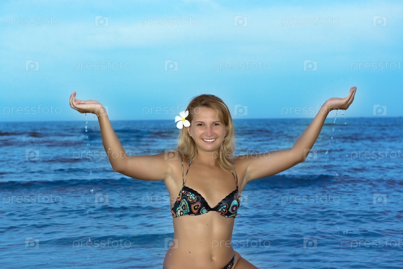 Счастливая молодая женщина на фоне моря