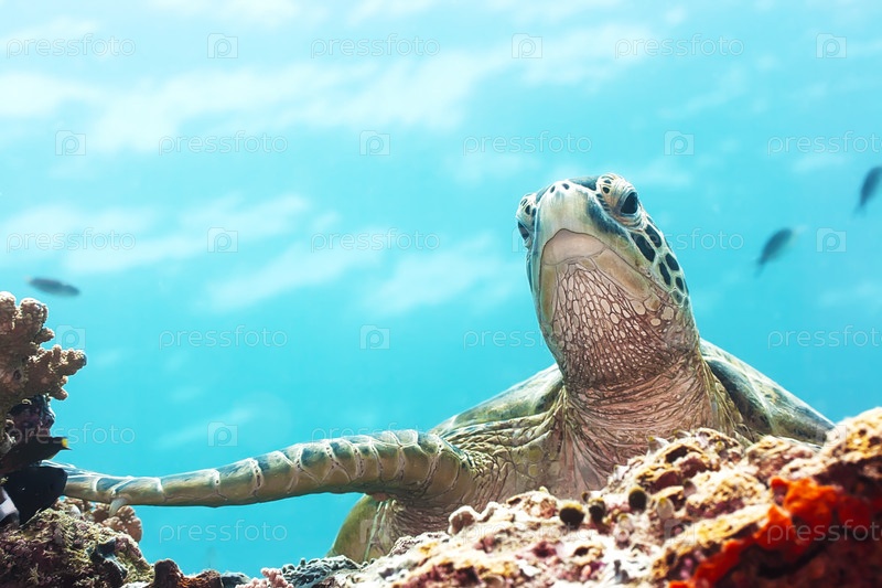 Морская черепаха крупным планом под водой. Сипадан. Целебесское море
