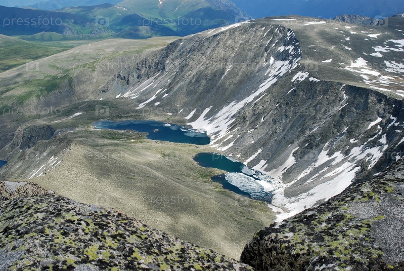 Вид на озера с вершины горы Колбан, Горный Алтай