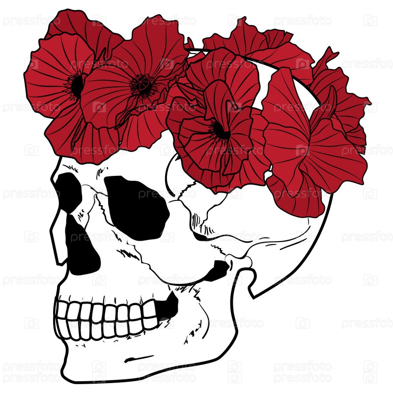 Череп с красными маками, иллюстрация