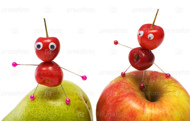 Два маленьких человечка из черешни на яблоках