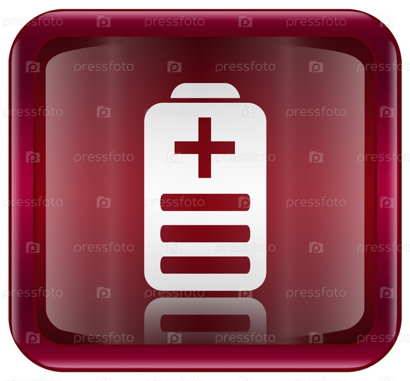 Темно-красная веб-иконка с изображением символа батарейки, изолировано на белом фоне