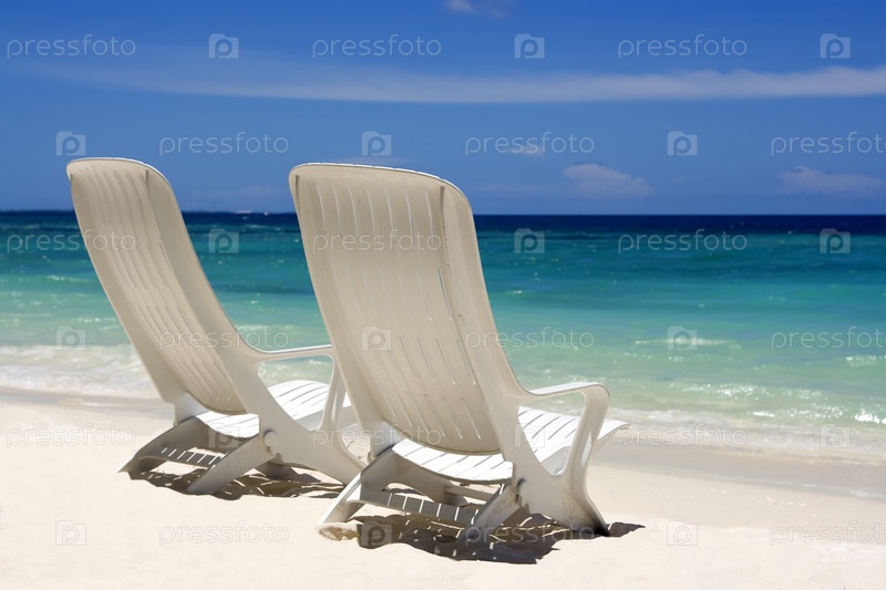 Два шезлонга на солнечном пляже