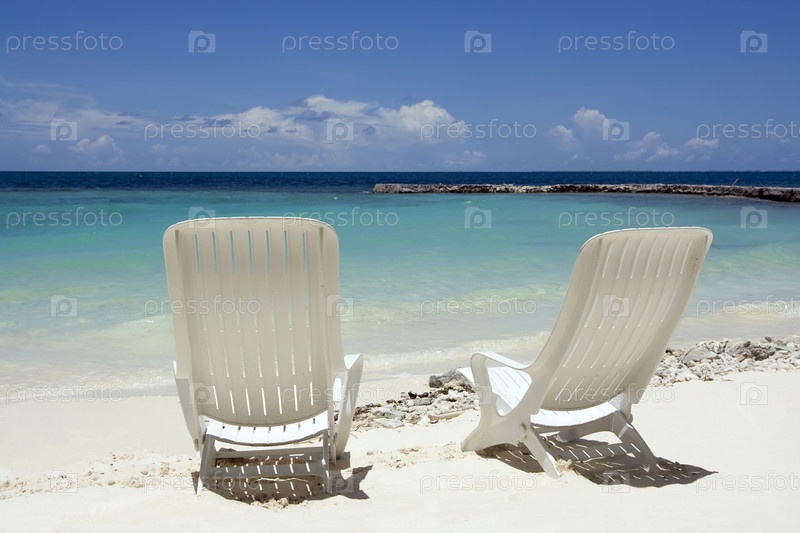 Два шезлонга на солнечном пляже