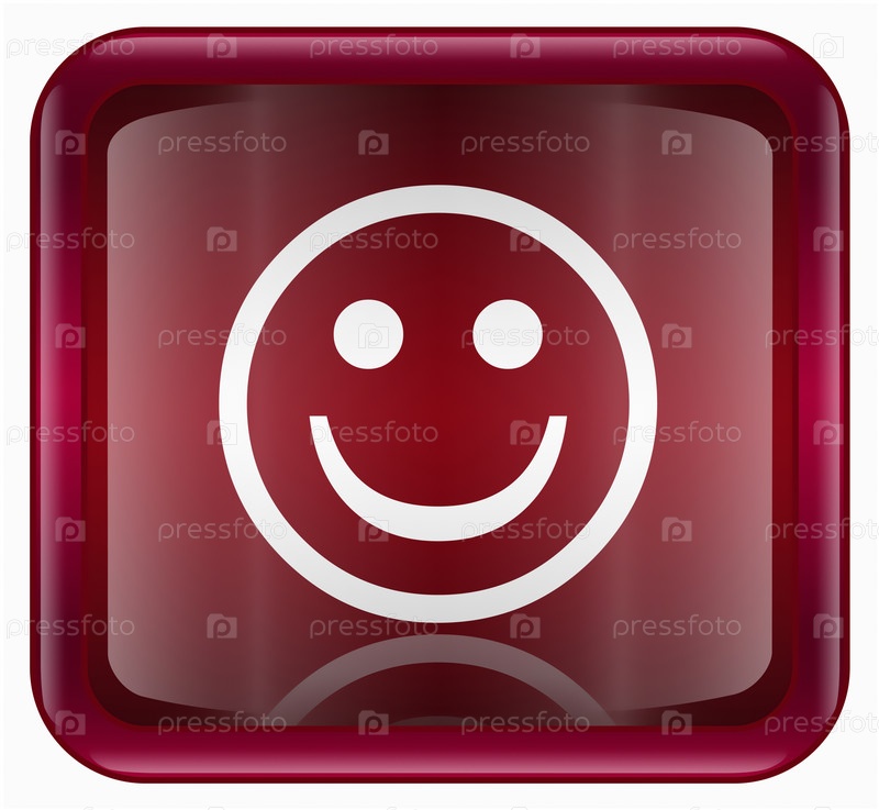 Темно-красная веб-иконка с изображением веселого смайлика, изолировано на белом фоне