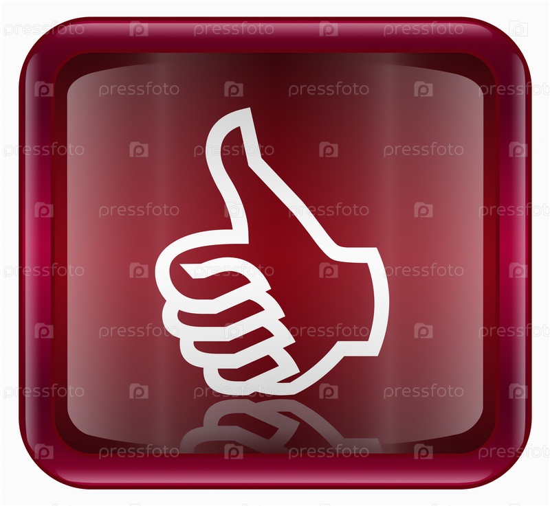Темно-красная веб-иконка с изображением символа одобрения, изолировано на белом фоне