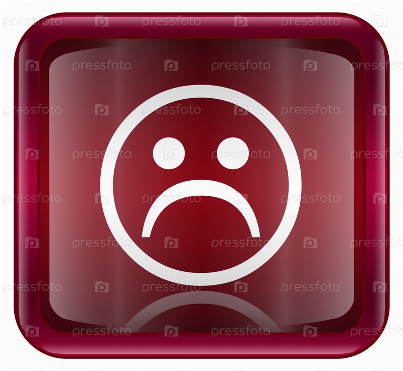 Темно-красная веб-иконка с изображением грустного смайлика, изолировано на белом фоне