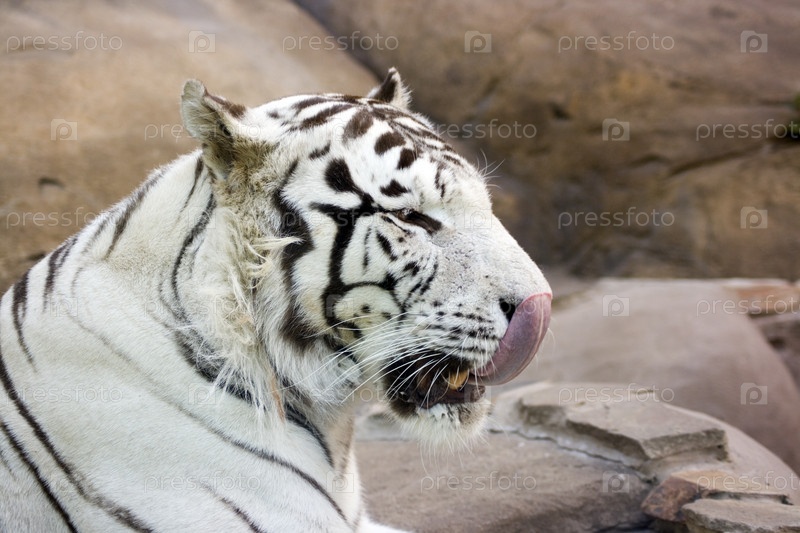 Белый тигр с высунутым языком