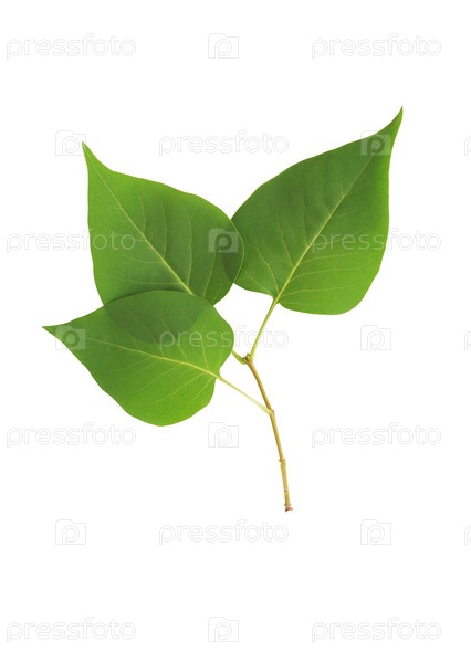 Ветка с зелеными листьями, изолирована на белом фоне