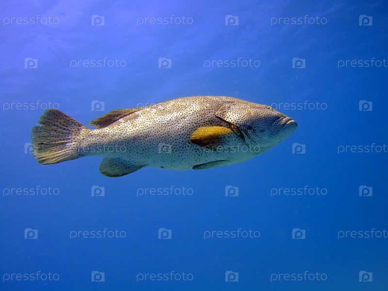 Большой морской окунь в синей воде