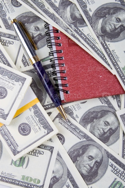 Блокнот и ручка на долларах