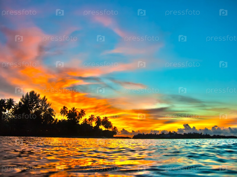 Закат, Индийский океан, Мальдивы
