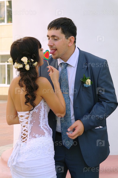 Портрет невесты и жениха с леденцом в виде сердца