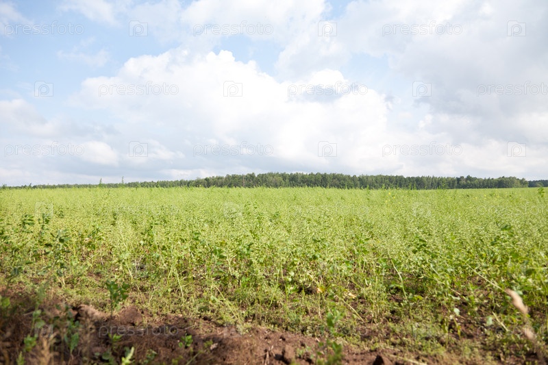 Зеленое поле под облачным небом
