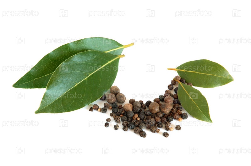 Лавровые листья и перец на белом фоне