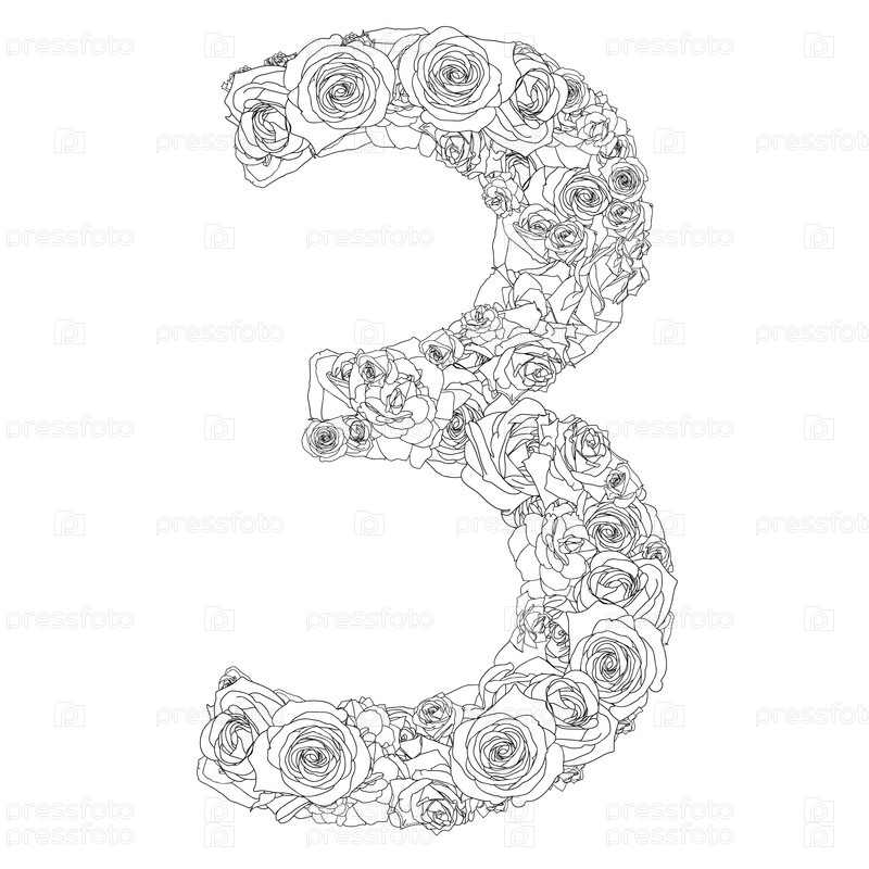 Цифра 3 из роз на белом фоне