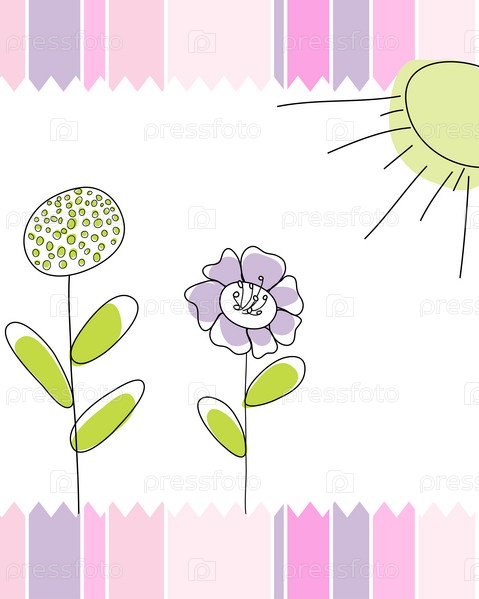 Шаблон поздравительной открытки с цветами и солнцем