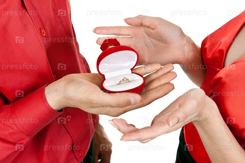 Мужчина дарит девушке кольцо с бриллиантом, крупный план