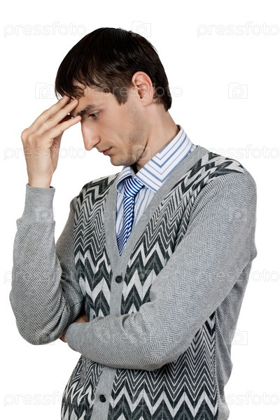 Думающий мужчина, на белом фоне