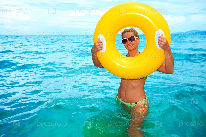 Радостная женщина с надувным кругом