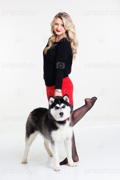 Девушка с хаски на белом фоне