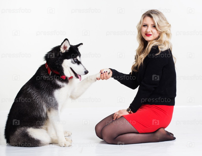 Девушка с хаски на белом фоне