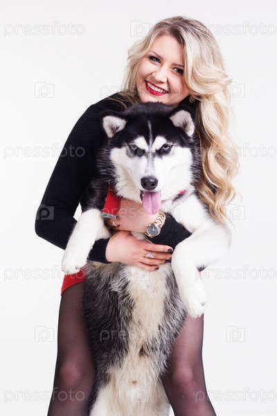 Девушка с хаски на белом фоне