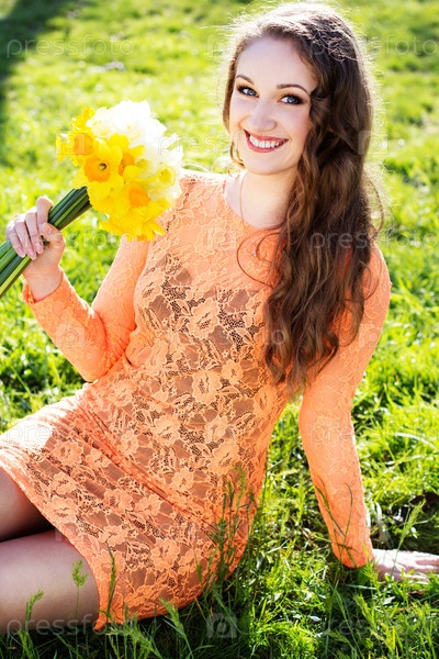 Счастливая девушка с нарциссами