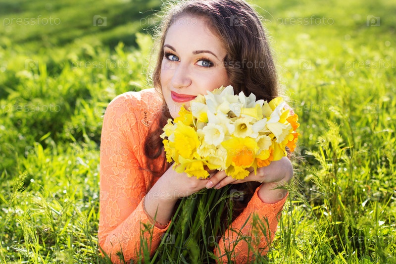 Счастливая девушка с нарциссами