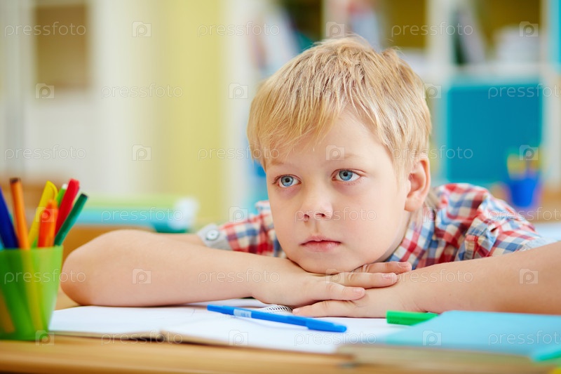 Уставший ученик в классе