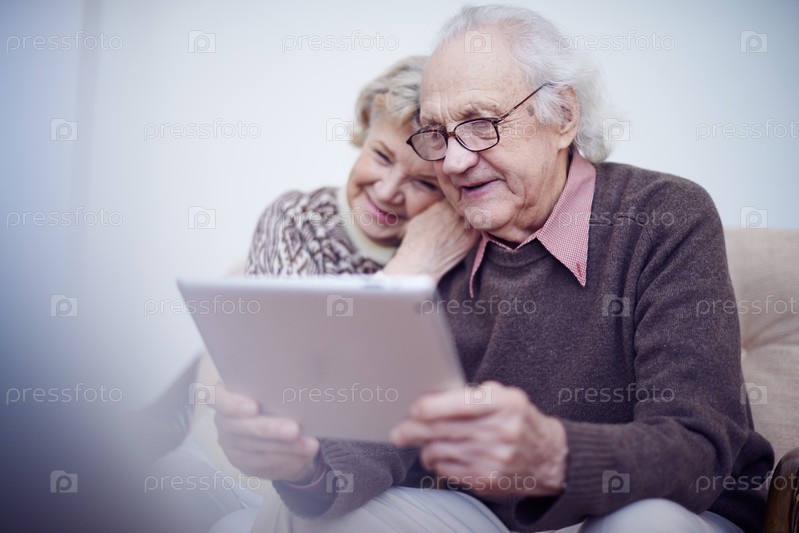 Пожилая супружеская пара с компьютером
