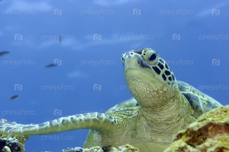 Колючая черепаха (Eretmochelus imbricata) крупным планом. Сипадан. Целебесское море