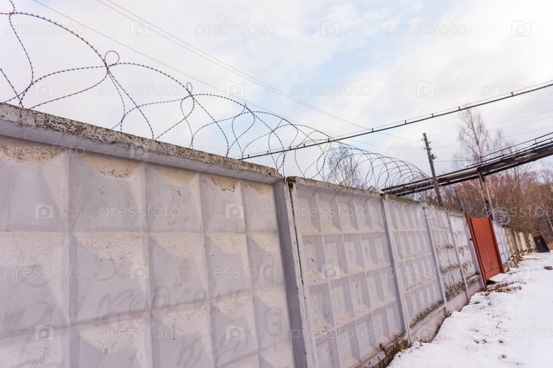 Колючая проволока на бетонной стене