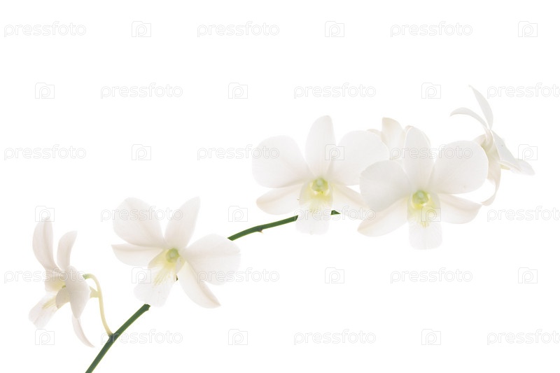 Ветка белых орхидей на белом фоне
