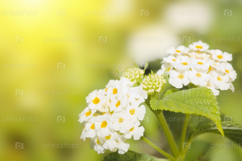 Лантана на зеленом фоне в солнечный день