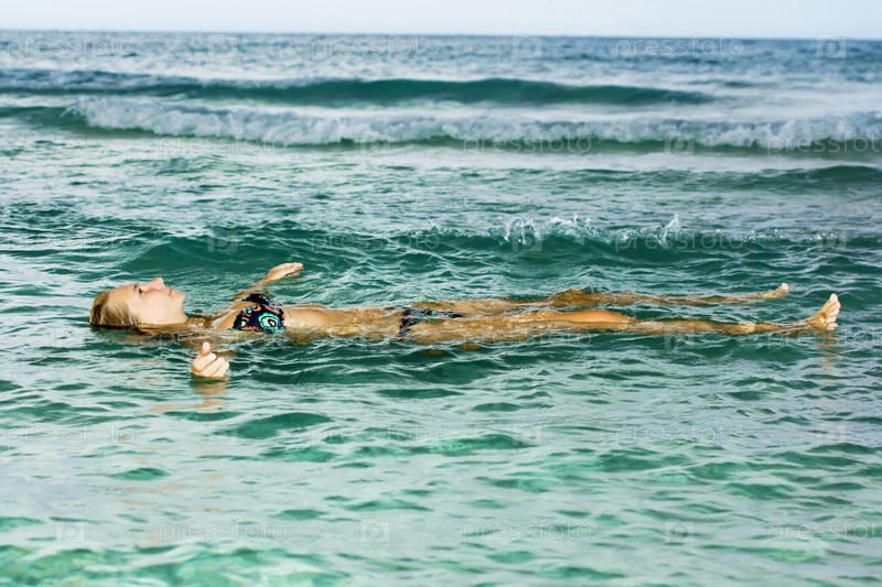 Женщина отдыхает в тропической лагуне