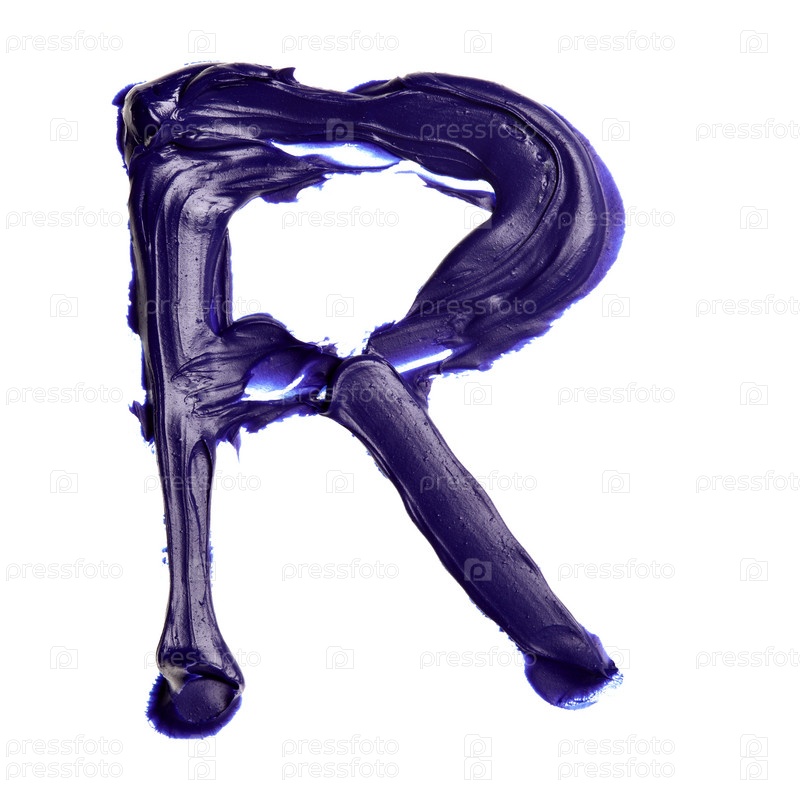 Алфавит, написанный маслом на белом фоне: буква R